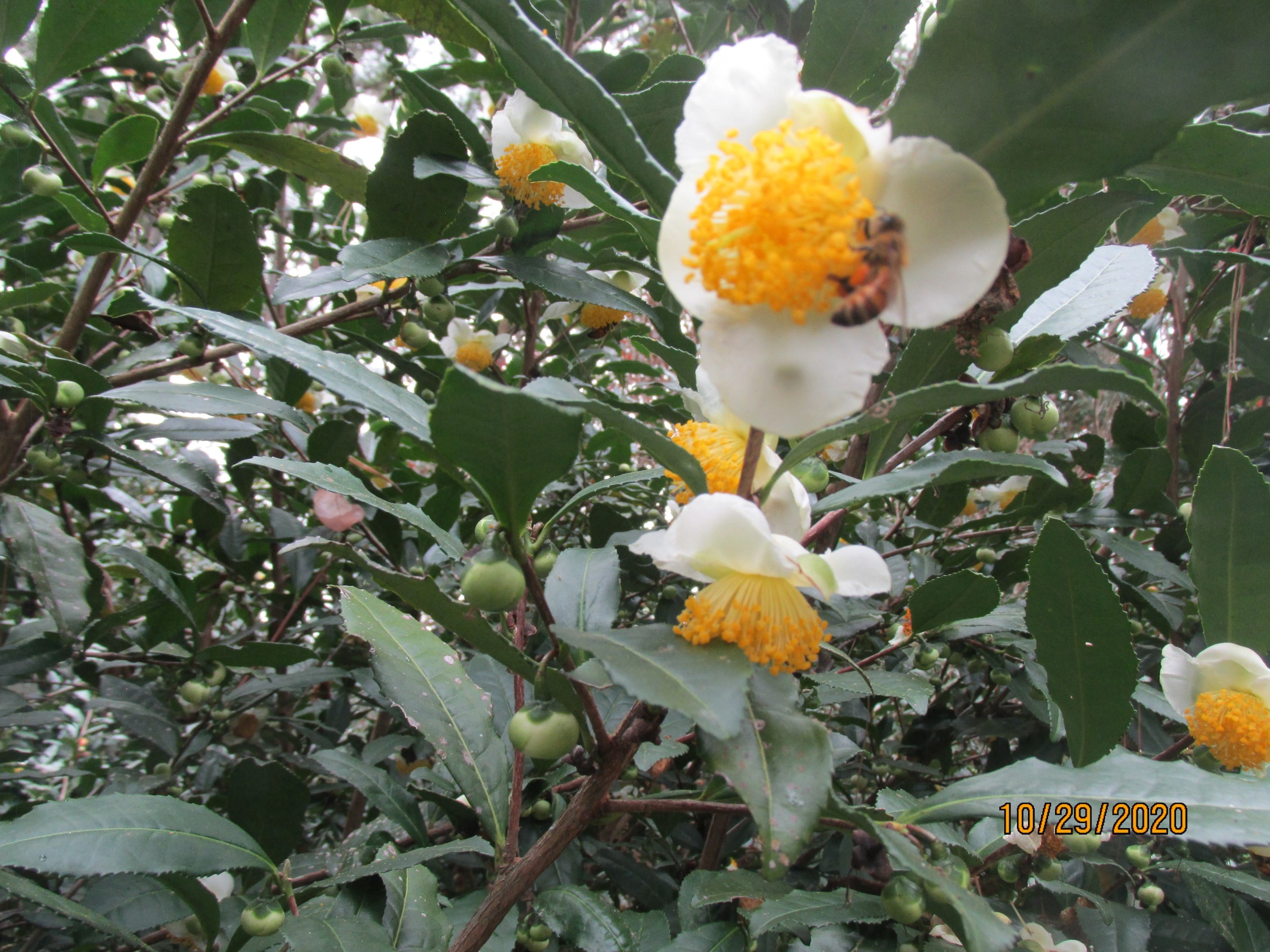 Camellia sinensis var. sinensis. White flowering tea plant. Sourced from Gene's Nursery. Seeds came from plants growing in Orlando Florida, parentage unknown.