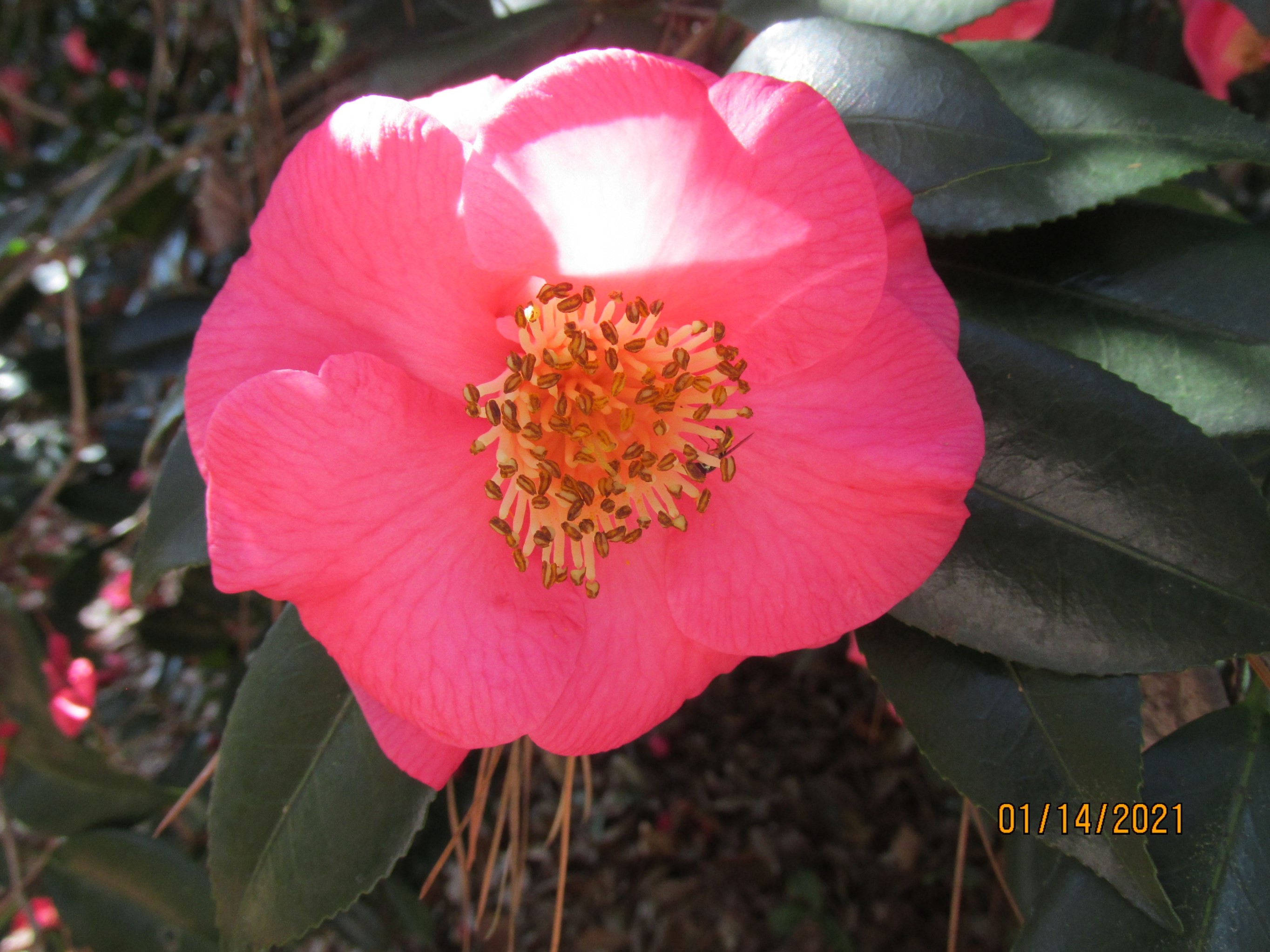 acuminate, 6.5 cm long x 2.5 cm wide. See colour pl. Camellia News