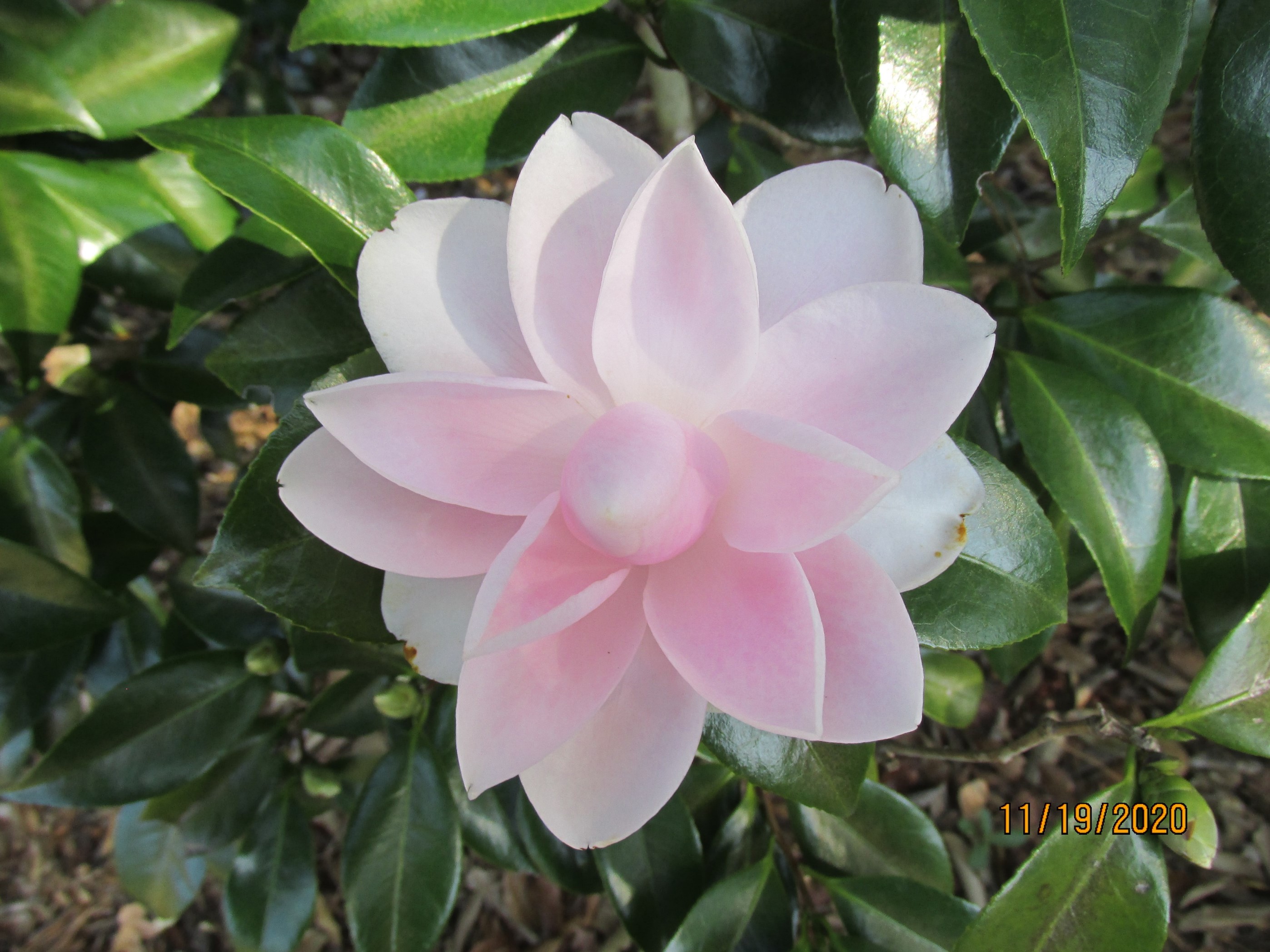 ACS., 1984, The Camellia Journal, vol.39, No.4, p.43, Reg. No.1956: A large, light pink formal double, C.japonica chance seedling that flowers early to mid-season. Originated at Nuccio’s Nurseries, Altadena, California, USA. The 12 years old seedling first flowered 1972. Average flower size 10 cm wide. Plant growth is upright, dense and medium in rate with dark green leaves, medium sized. Chinese synonym ‘Xingfu Jiari’. |
