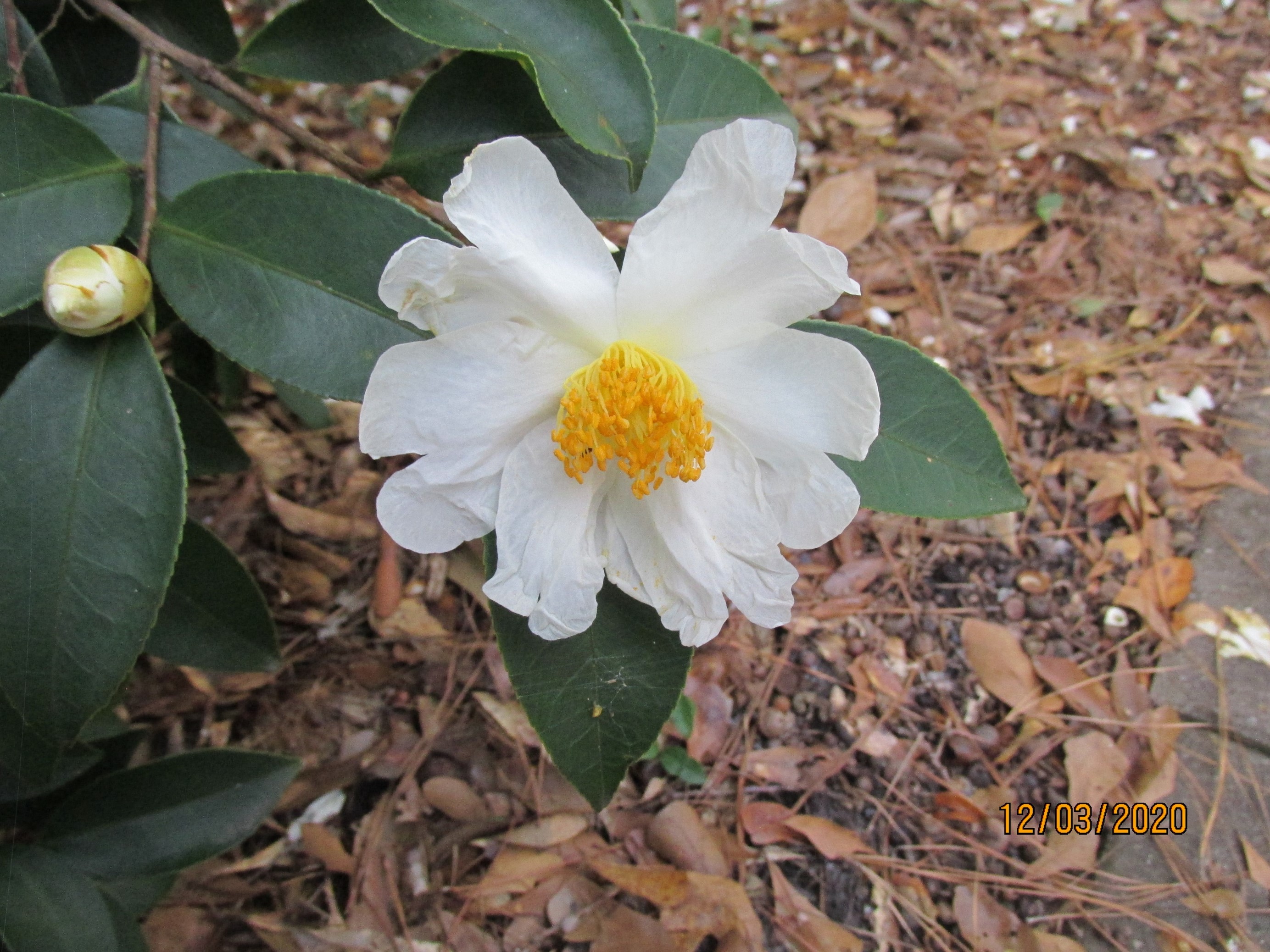 SCCS Camellia Nomenclature 2009, p.195. White, very large and very fragrant. Vigorous spreading growth. Flowers mid-season. Originated in 2008 by CamelliaShop, Savannah, Ga., USA. Note: The stated parentage is most unlikely to be correct. C.synaptica is closely allied to C.tsaii, and has similar sized tiny flowers. Plants distributed in the USA as C.synaptica appear to be a form of C.yunnanensis.