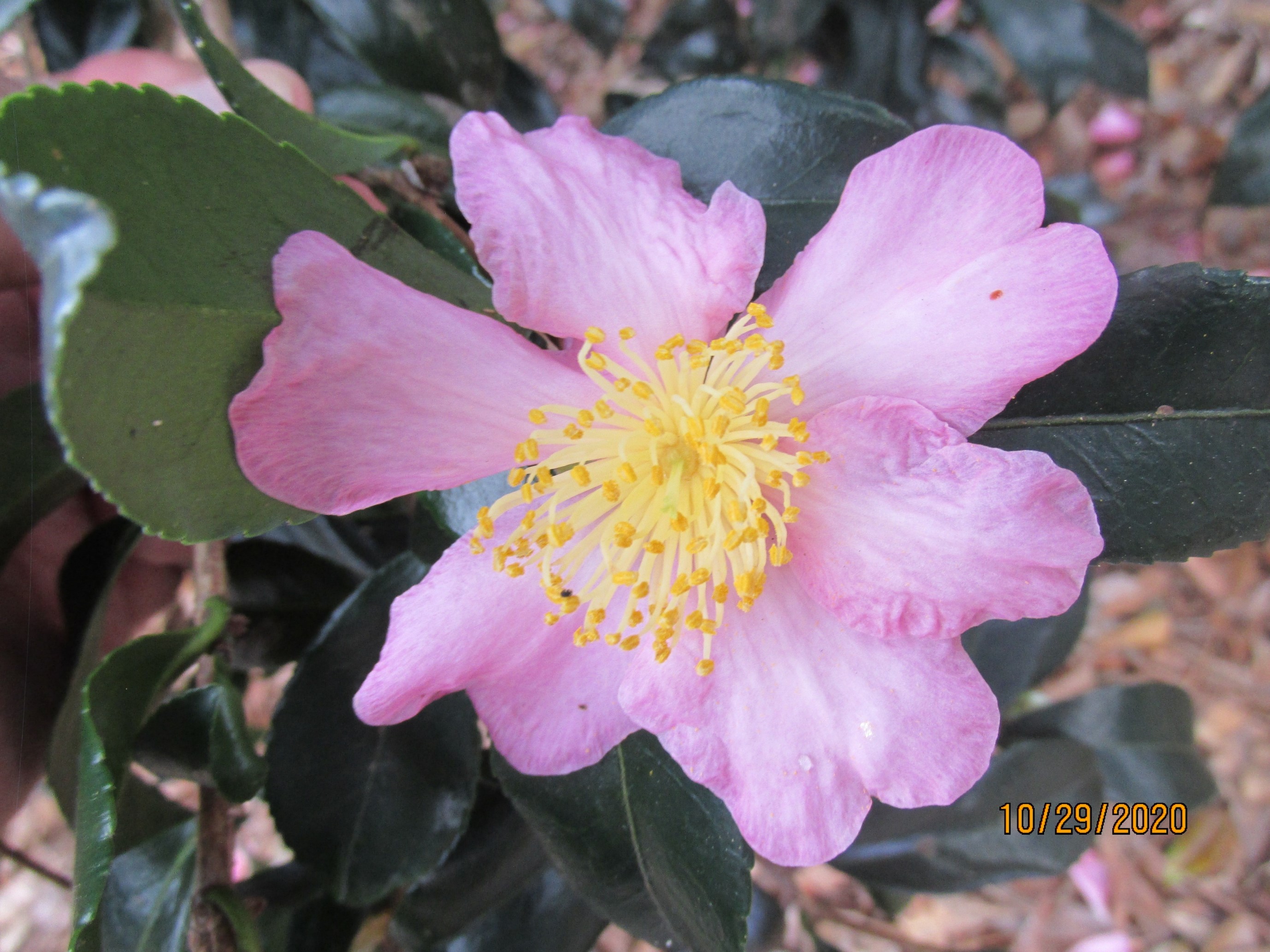 medium pink, semi-double hybrid (C.oleifera x C.hiemalis) x C.oleifera.