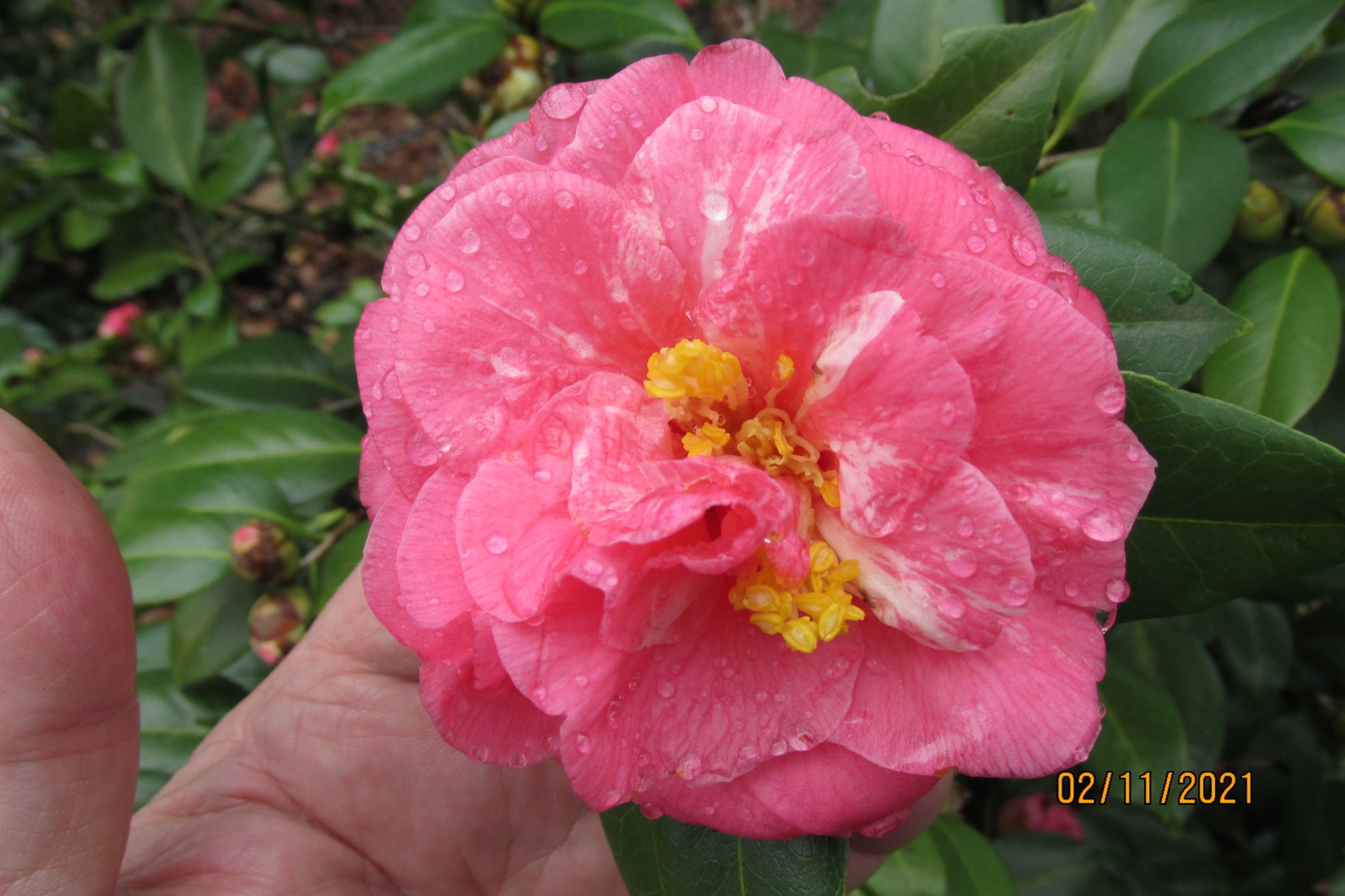 shell pink, peony form hybrid (C.japonica Kramer’s Supreme x