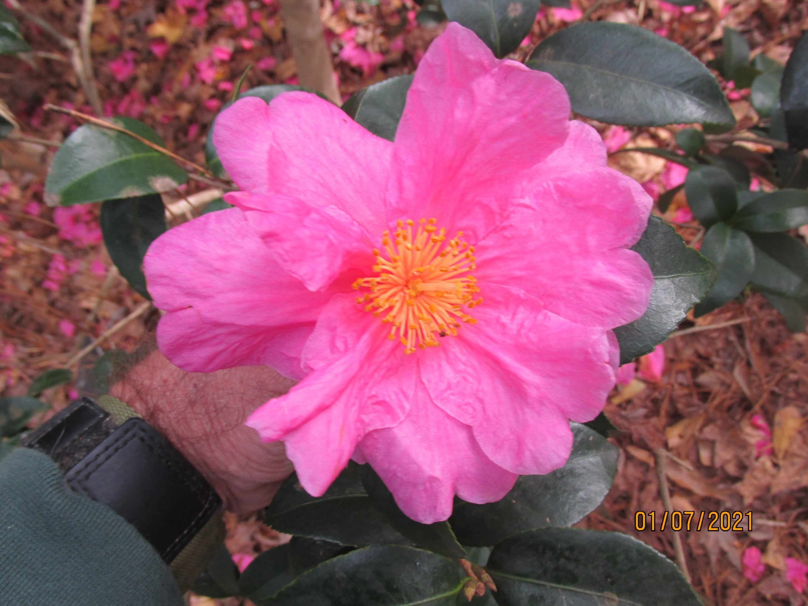 SCCS., 1966, Camellia Nomenclature, p.151: Pink. Large semidouble to peony form(C.sasanqua Narumigata x C. reticulata Damanao) Originated by Howard Asper, Escondido, California, USA. See colour illustration front cover SCCS., 1969, The Camellia Review, vol.30, No.3. Orthographic variant: ‘Flowergirl’. Chinese synonym: ‘Huanü’, & ‘Maihua Guniang’. |