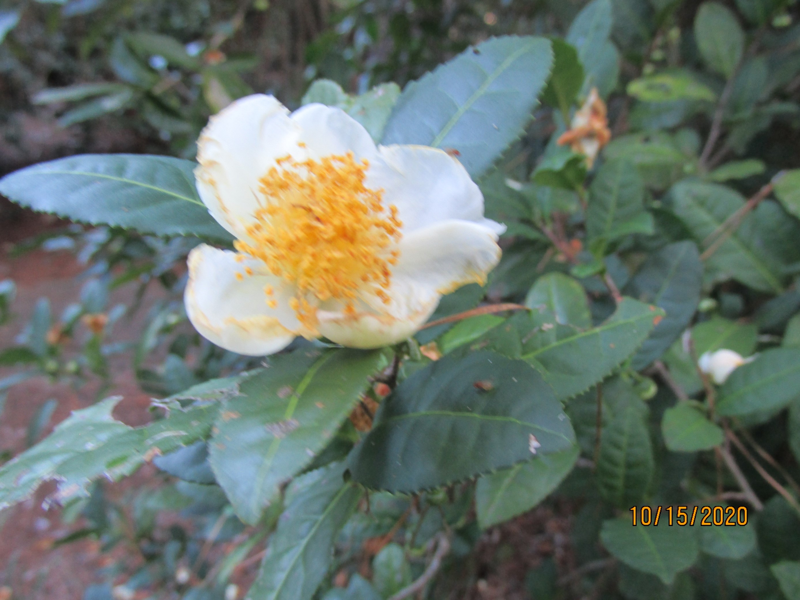 Camellia Sinsensis. White flowering tea plant. Sourced from Gene's Nursery. Seeds came from plants growing in Orlando, Florida, parentage unknown. |