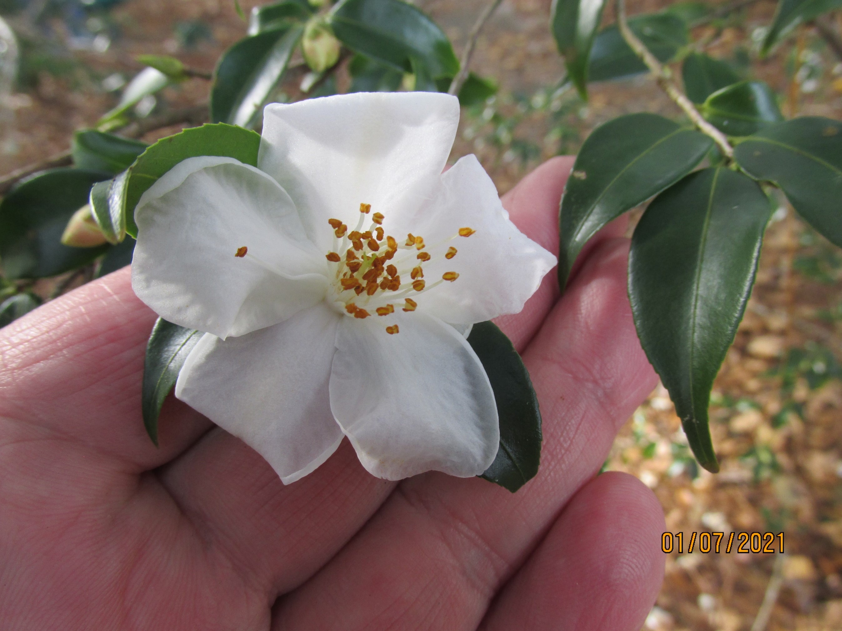 Species: Camellia euryoides Color: White Form: Single Size: Small Bloom Season: M-L Growth Rate: Average Growth Characteristics: Shrub or small tree; older branches smooth and gray in color Place of Origination: Fujian Province, China |