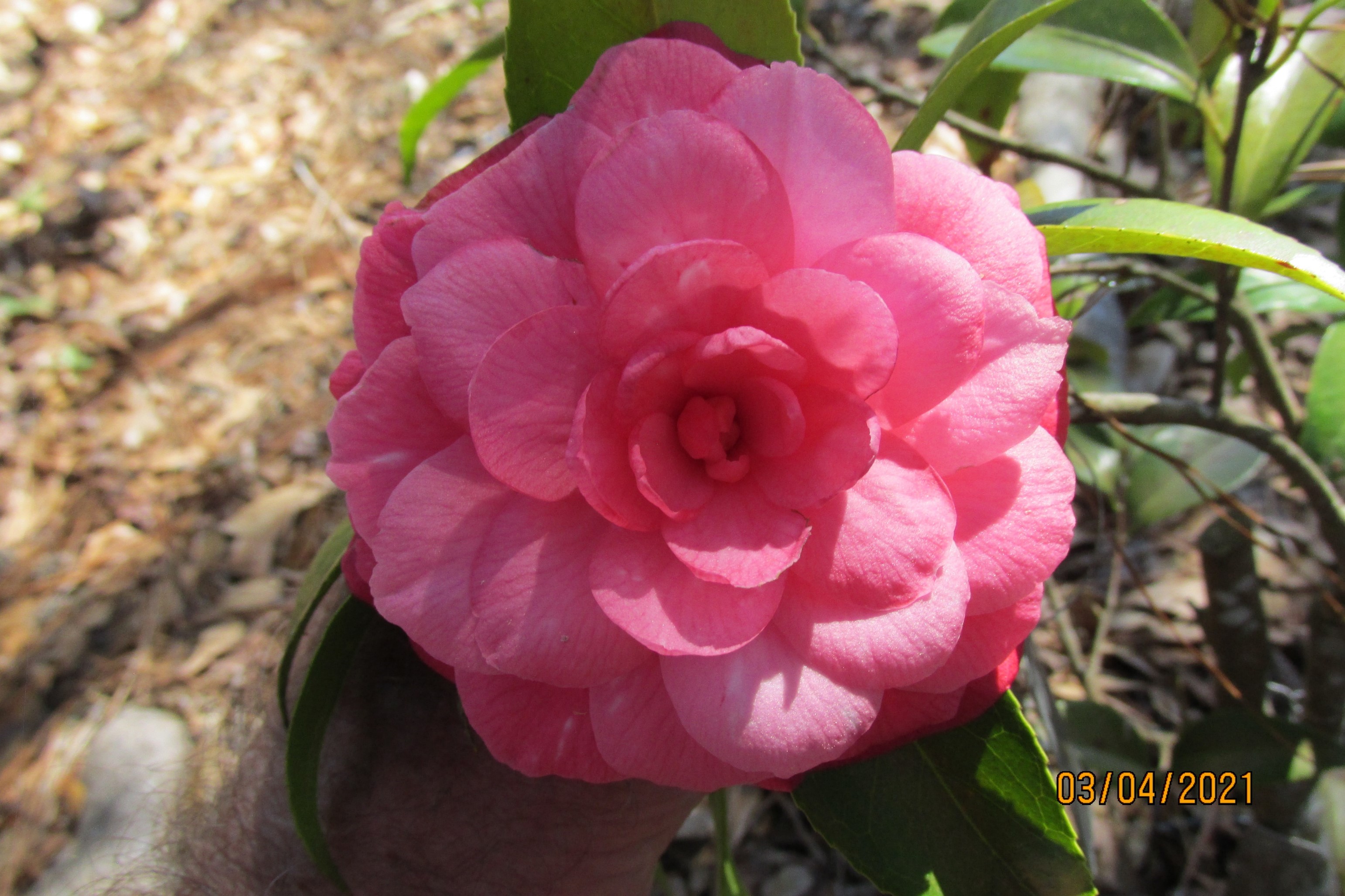C.reticulata hybrid seedling of Diamond Head. Blooms mid-season to late.