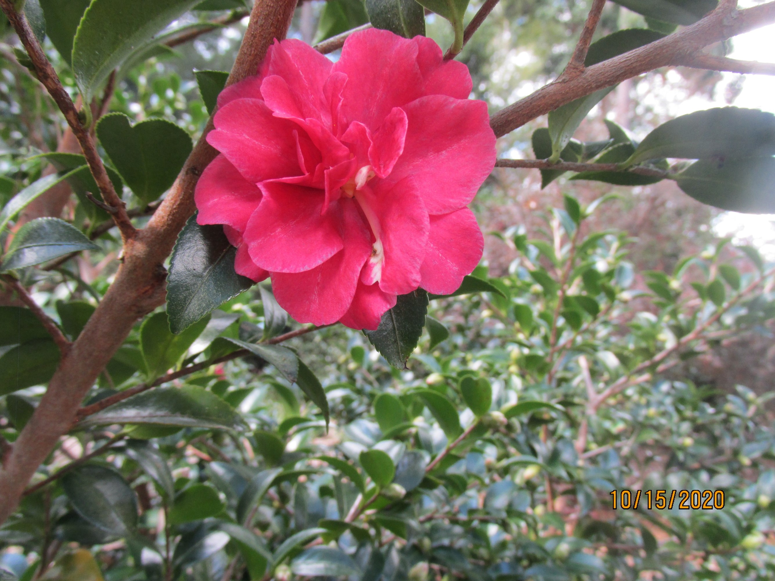 SCCS, Nomenclature Supplement, 2014. Originated by Bobby Green, Green Nurseries, Fairhope Ala., USA. Small to medium, red single. Dense, semi-dwarf growth. Flowers early to late. Introduced 2002. |