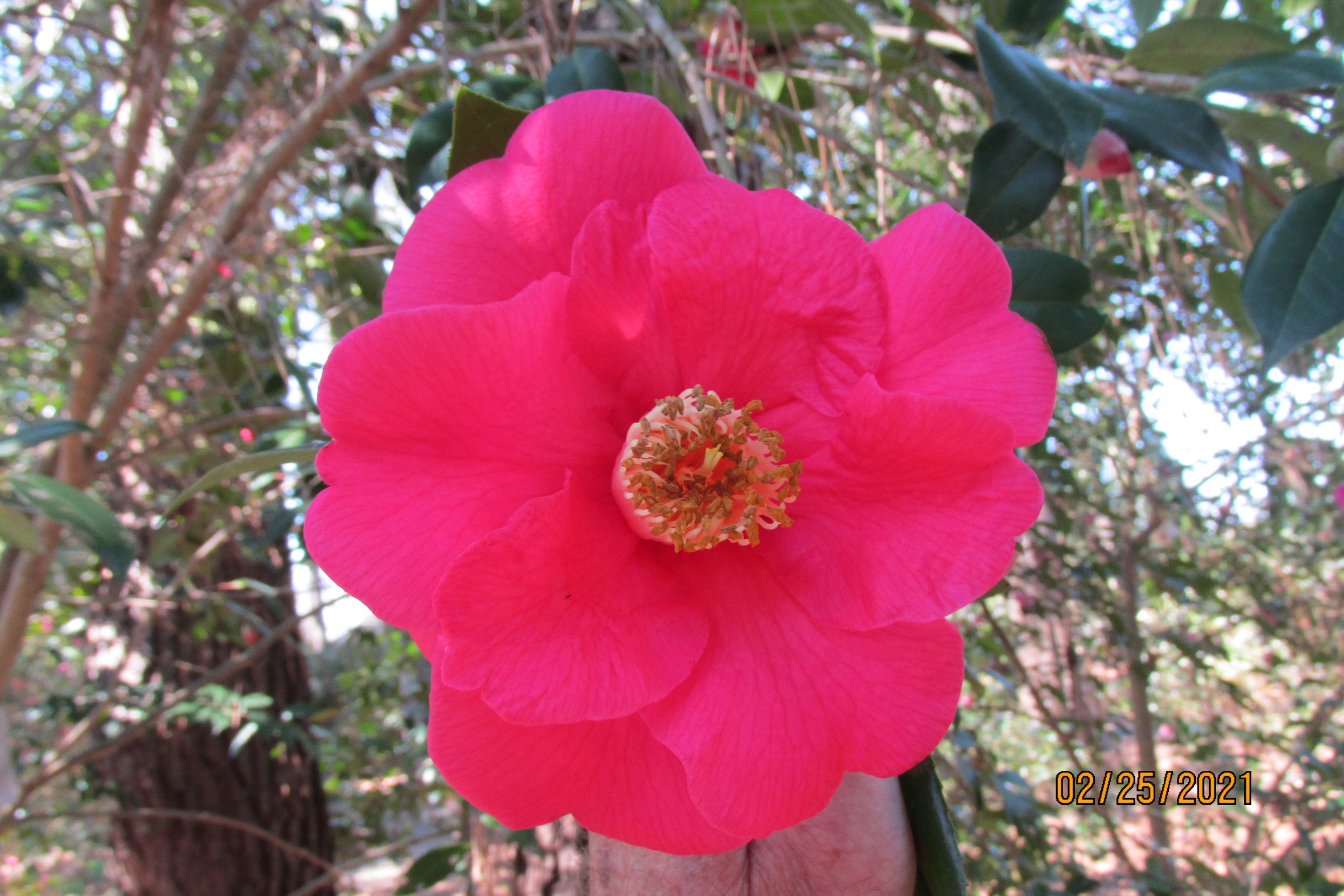 Camellia Forest Nursery Catalogue, 1995, p.10: A seedling of C.japonica Princess Lavender x C.x williamsii William’s Lavender. Originated by Dr Clifford Parks, Chapel Hill, N.C., USA. A very large semi-double with bright orchid red flowers produced late in the season. A very strong, vigorous, free flowering plant. |