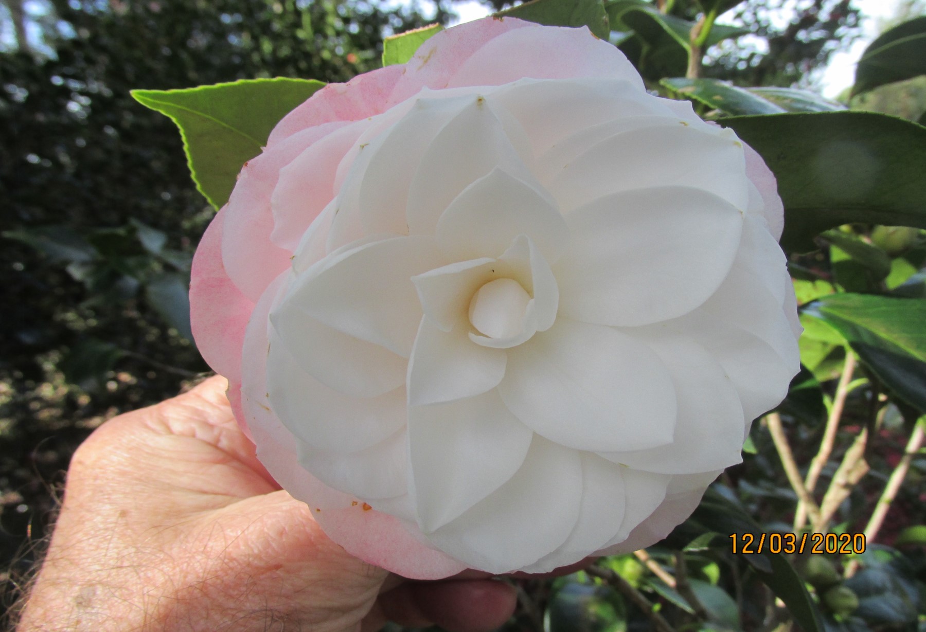 double flower averages 10 cm across x 3.8 cm deep with 80-90 petals. The