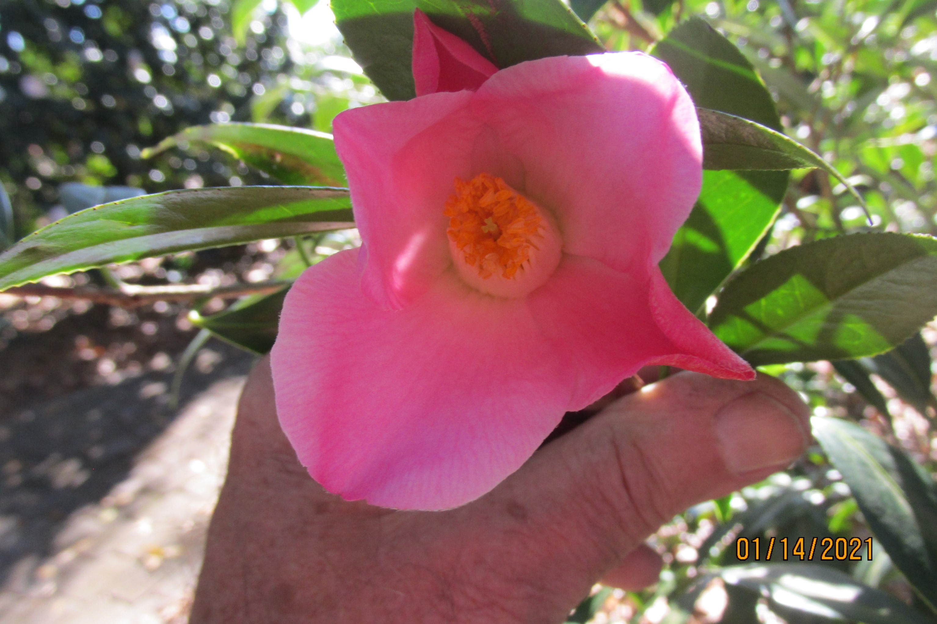 SCCS, 1981, Camellia Nomenclature, p.199: Light pink. Medium sized single of tulip form. Vigorous, open growth. Blooms mid-season. Originated in USA by David Feathers, Lafayette, California. Chinese synonym ‘Yujinxiang’. |