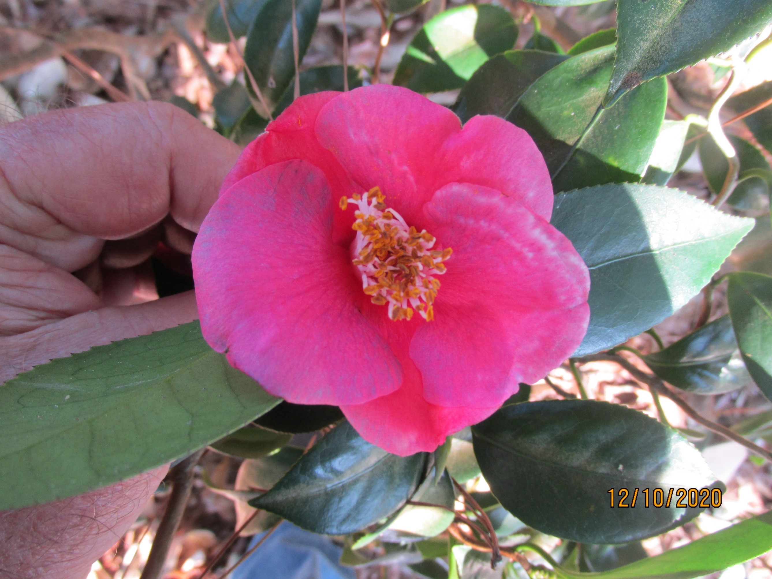 Species: Japonica Color: Deep pink with yellow anthers and red filaments Form: Single - each leaf is part of an unusual zigzag pattern Size: Small Bloom Season: Early Growth Rate: Average Growth Characteristics: Upright growth Leaf Characteristics: Medium green Place of Origination: Japan - Izu �shima Year of Registration / Origination: 1967 Other Information: Japanese name - Unry�-tsubaki. (Zigzag Camellia) |